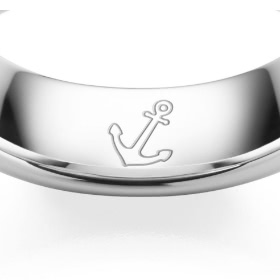 In der Regel gravieren wir hier Namen und Datum ein. Diese werden gerne mit einem dezenten Steinbesatz oder kleinen Herzen ergänzt.